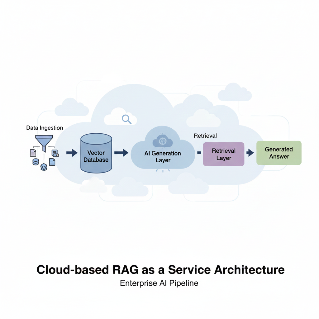RAG as a Service means providing RAG capabilities as a fully managed cloud service instead of building everything from scratch.